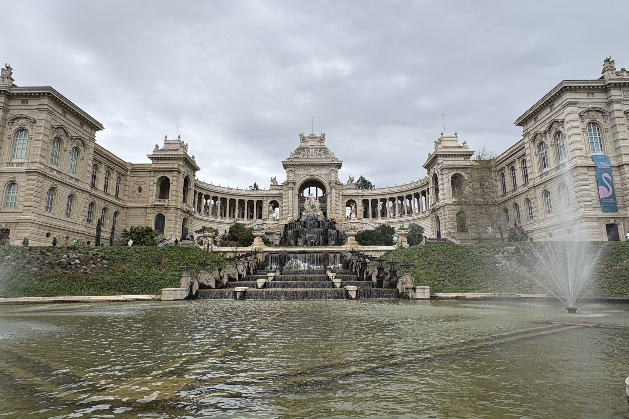 19. yüzyılda inşa edilen Palais Longchamp, Marsilya’ya su getirilmesini kutlamak amacıyla yapılmış anıtsal bir yapı. İçinde Güzel Sanatlar Müzesi ve Doğa Tarihi Müzesi de bulunuyor. Gördüğüm en zevkli ve en ihtişamlı çeşmelerden biriydi. Etrafındaki yeşilliklerle, şelaleriyle ve önündeki büyük havuzuyla adet cenetten bir köşe gibiydi. Arkasında da keyifli bir botanik bahçesi yer alıyor.