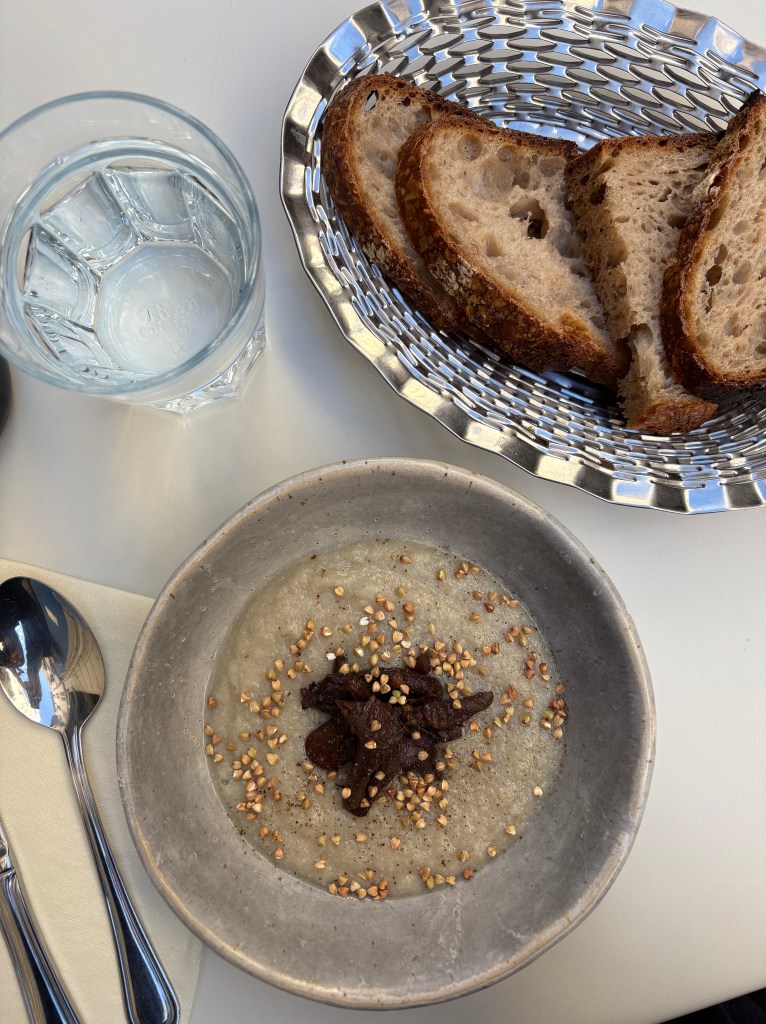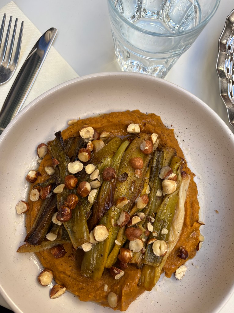 Mauvaise Herbe: Merkezde yer alan bu mekanda 15.30’a kadar başlangıç, ana yemek ve tatlının olduğu bir öğle menüsü sunuyorlar. Ben mantarlı bir çorba, balkabağı püresi ve tofu kreması ile servis edilen karamelize pırasa, tatlı olarak da elmalı armutlu turta denedim. Lezzetli, doyurucu ve tatmin edici bir menü oldu.
