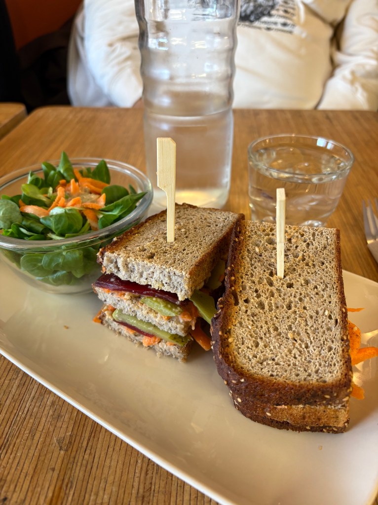La Pepite: La Panier’in hemen girişinde yer alan bu mekan, glutensiz ve laktozsuz seçenekler sunuyor. Yani vegan veya vejetaryen olmasa dahi, tercih edebileceğiniz vegan pizza, bowl, sandviç ve tatlı alternatifleri mevcut. Ben humuslu pancarlı bir sandviç ve mangolu hindistan cevizli bir tatlı denedim. İkisinden de oldukça memnun kaldım.